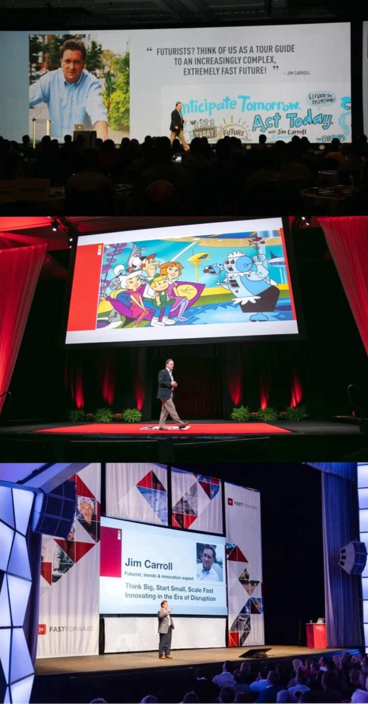 For 30+ years, Futurist Jim Carroll has been on a mission to help organizations understand how to align to tomorrow, today.Jim Carroll is the futurist that CEOs trust. His global client list demonstrates that they seek his accumulated 30 years of experience, wisdom, and insight, developed by the time he has spent with some of the leading organizations in the world.Jim’s leadership keynote will align you to your disruptive, accelerating future by providing detailed, specific industry trends. It’s powerful leadership insight delivered in a compelling and motivational style!You know you need to align to a world that is faster, more complex, and that demands resilience. You need deep insight into the trends that will impact you and the strategies that you can pursue to align with them. You need to inspire your leadership team and members to get moving. That’s how Jim Carroll will help you.Don’t just take Jim’s word for it. Join other leading organizations like NASA, Pfizer, The World Bank, Mercedes Benz, the PGA, Blackrock, the Wall Street Journal, and even Disney, all of whom arranged for Jim’s insight for a global leadership event or customer meeting – and came away empowered with new insight to take on our faster, more complex world.